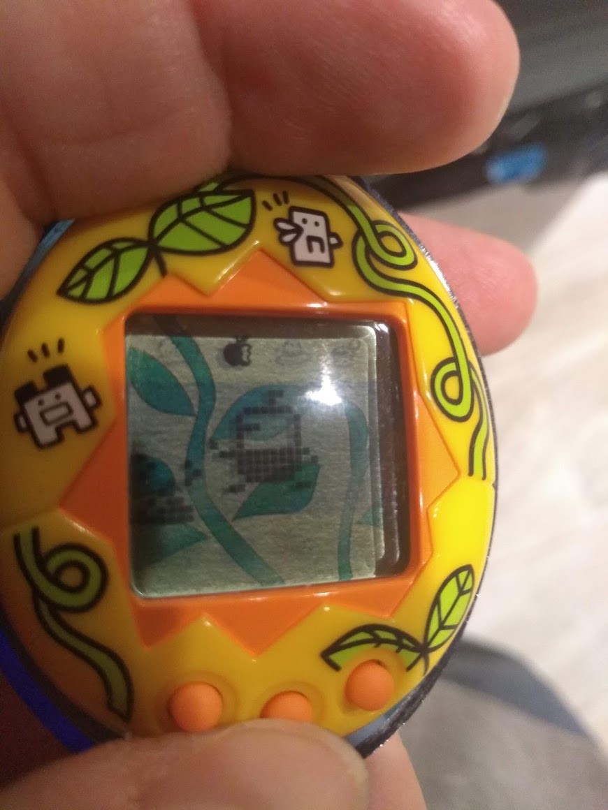 Photo of My Morino Tamagotchi shell (orange w/ vines)